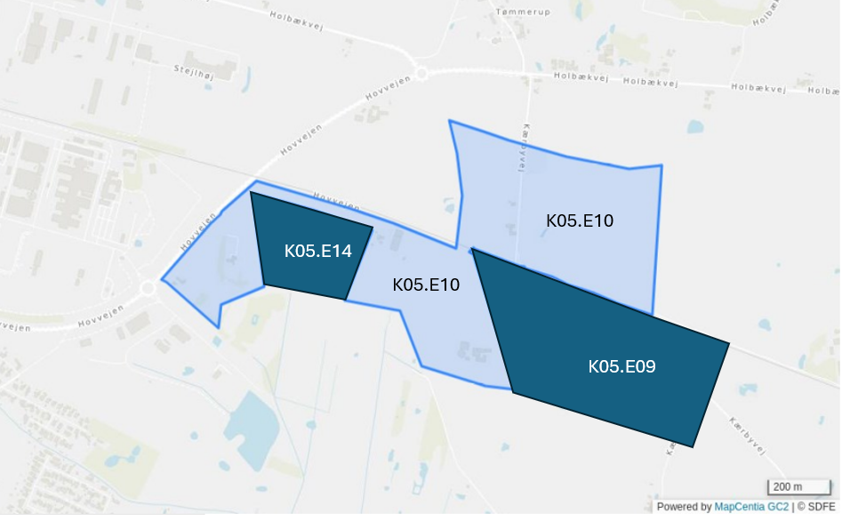 De fysiske ændringer af rammeområde K05.E.09, K05.E10 og K05.E14 fremgår af nedenstående kort.