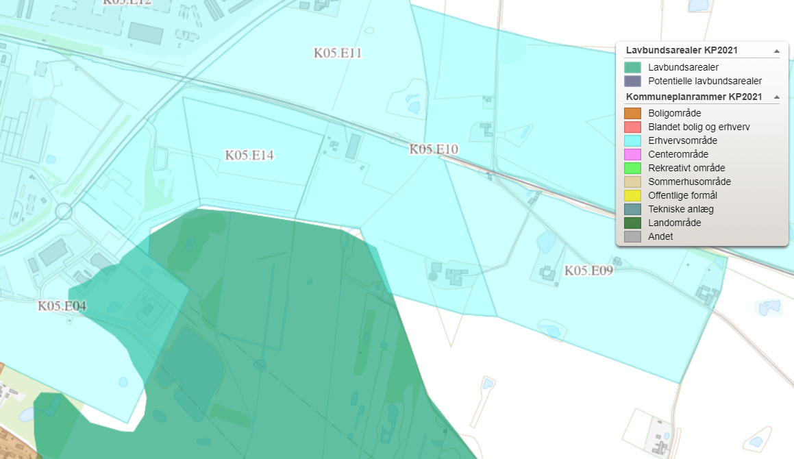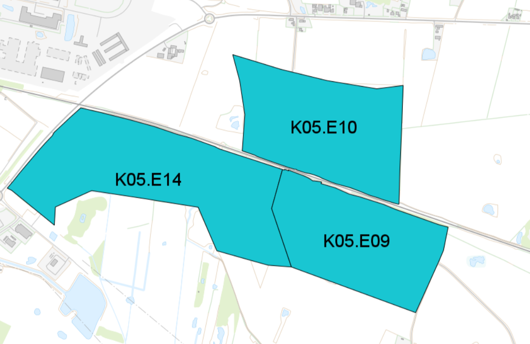 Rammeområde K05.E14 udvides fra ca. 7,9 ha til ca. 31,7 ha. Samtidig reduceres K05.E10 fra 48,7 ha til ca. 24,9 ha og til kun at omfatte arealer nord for jernbanen.