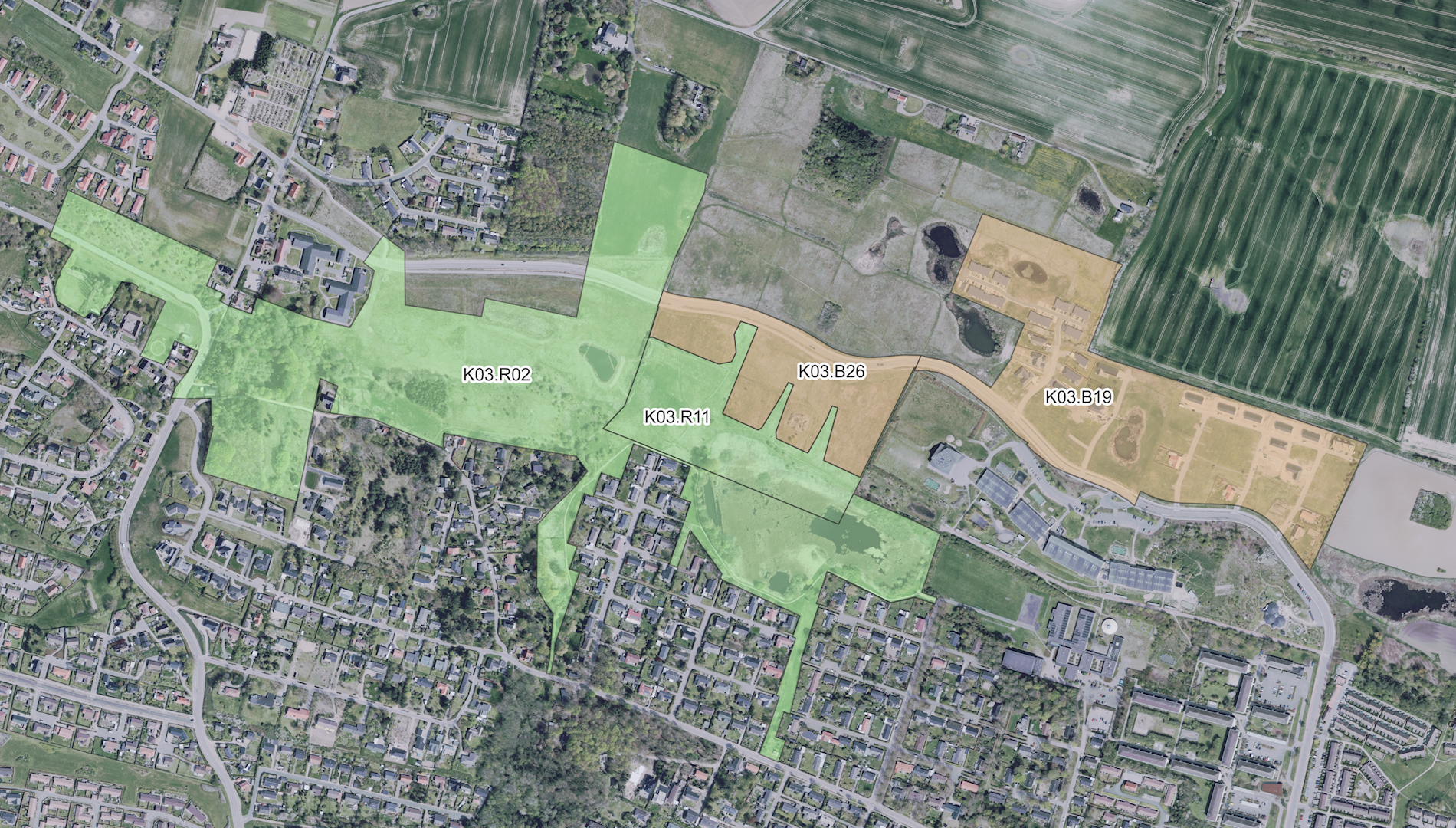 - Rammeområde K03.B26, som er en ny planramme for et boligområde.
