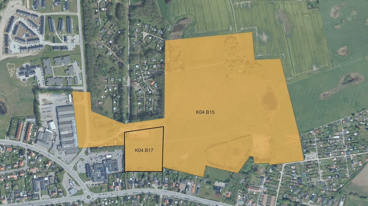 - Udlægge en selvstændig ramme til boligformål, K04.B17, som en del af det større rammeområde K04.B15. Den nye rammes §§ skal kun gælde for det aktuelle område.