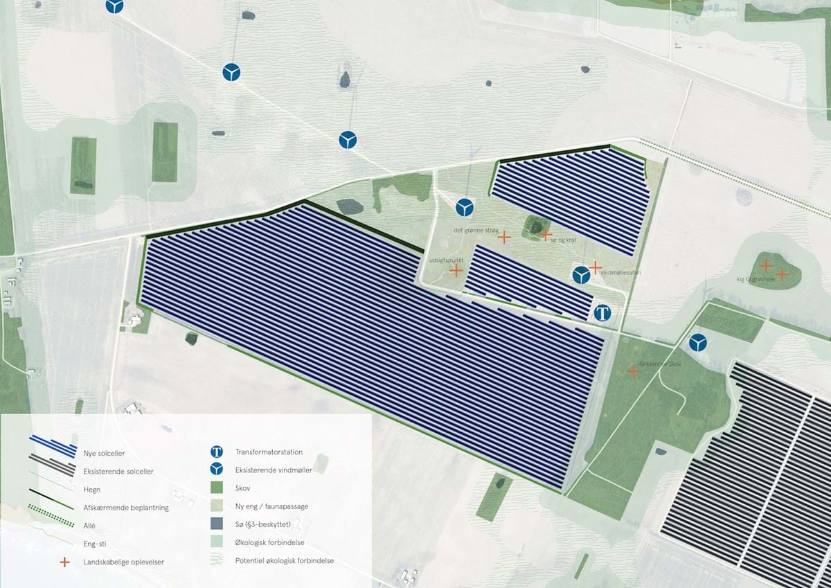 Figur 2: Landskabsplan for udviddet solcelleanlæg ved Lerchenborg